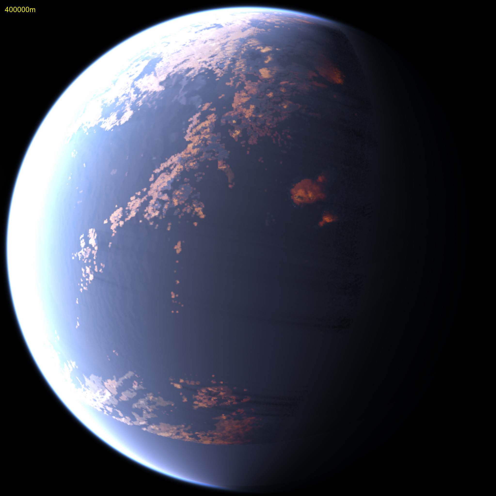 An example shown above is just after sunrise from 200km altitude. This considers lighting
