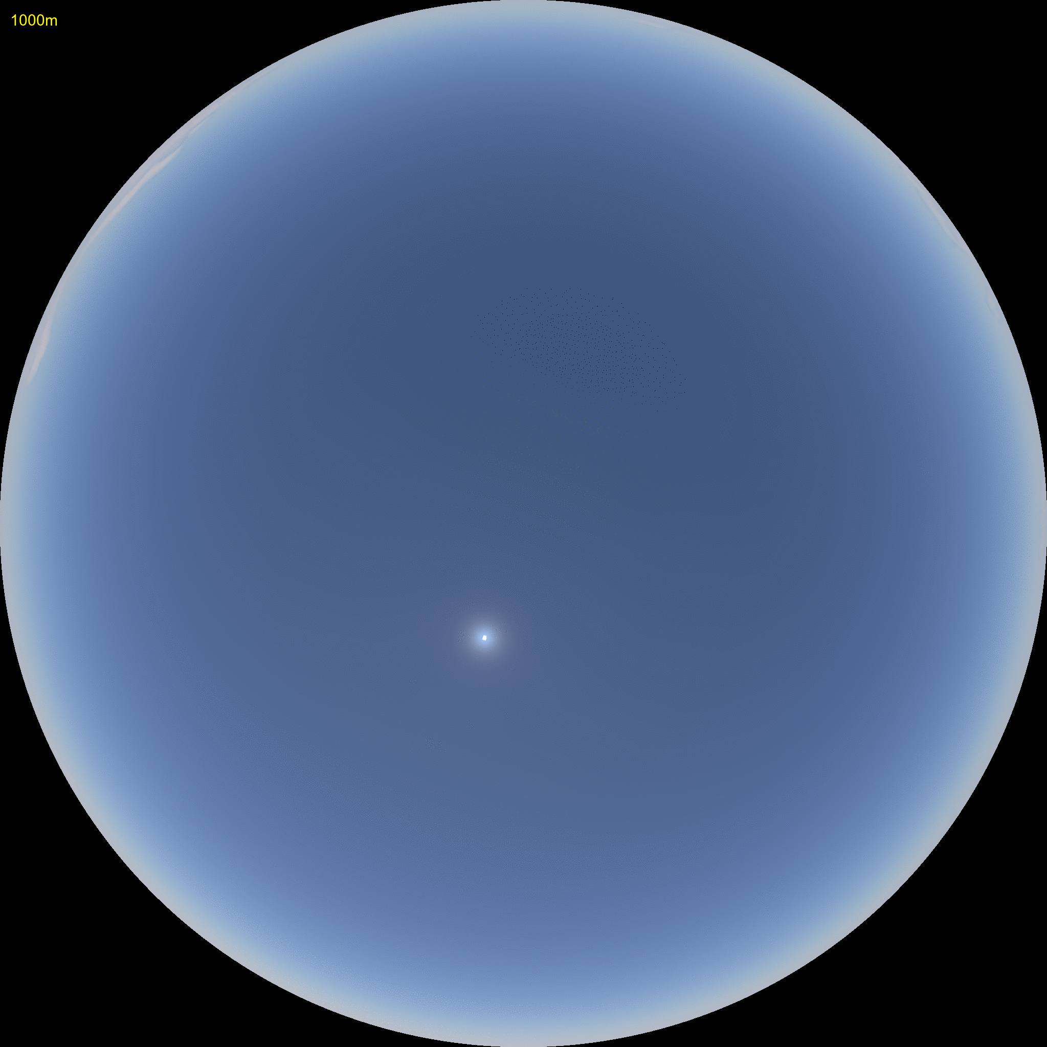 The bottom is a full polar view where the limb is about 2000km (20 degrees great circle distance) from the observer.