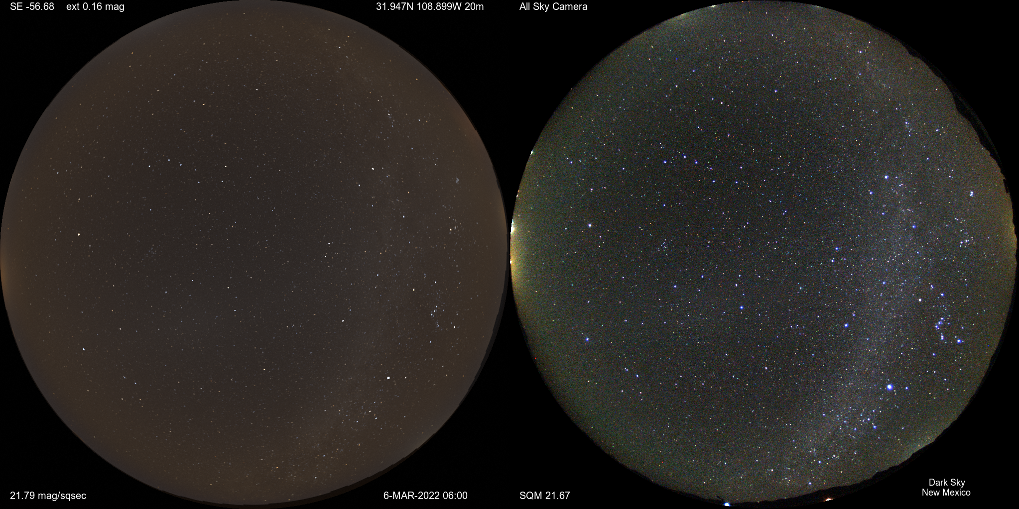 Stellar limiting magnitude at the zenith is listed, and assumes a moderate amount of skyglow due to artificial lighting. These are intentionally "underexposed" so we