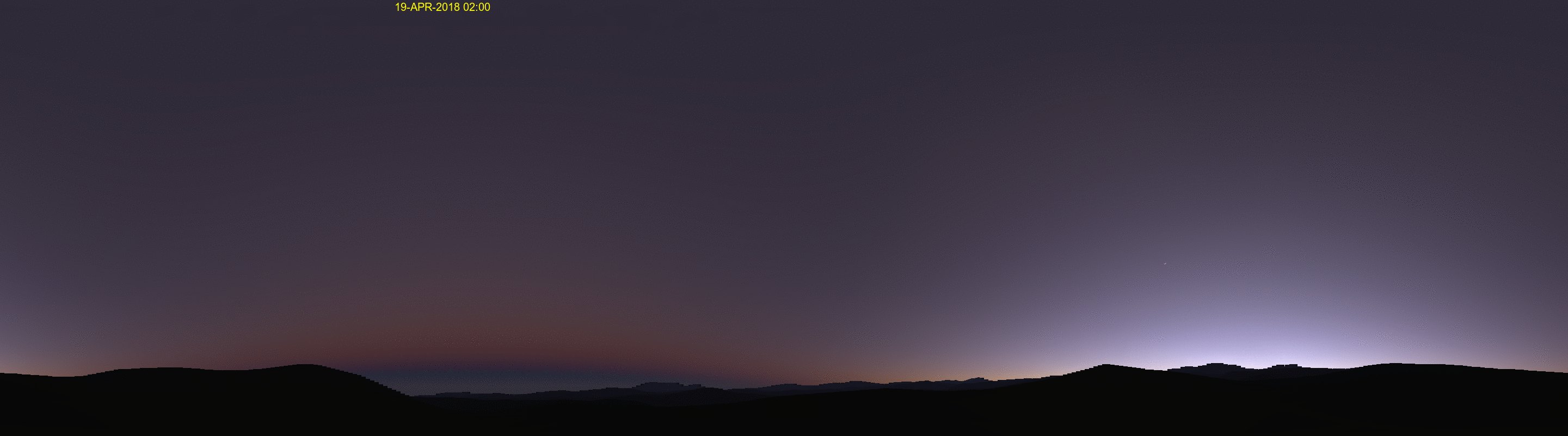 Above is a cropped twilight view from a rural mountain location with the sun about 15 degrees below the horizon.