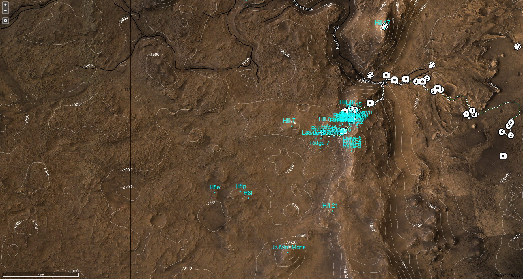 Map 5 (outside Jezero rim traverse 5km wide)